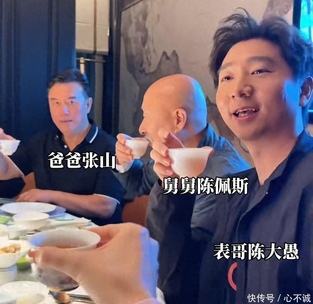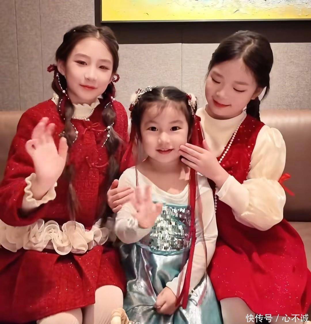 这次聚会挺热闹的,人都到得差不多,除了陈佩斯父子以外,他的两个孙女也一块儿来了,大家都聚在一起,可惜没有看到那两个双胞胎孙子。两位孙女穿得那叫一个红彤彤,喜气洋洋的,又变得越来越漂亮,中间的小女孩可是张山的外孙女呀。